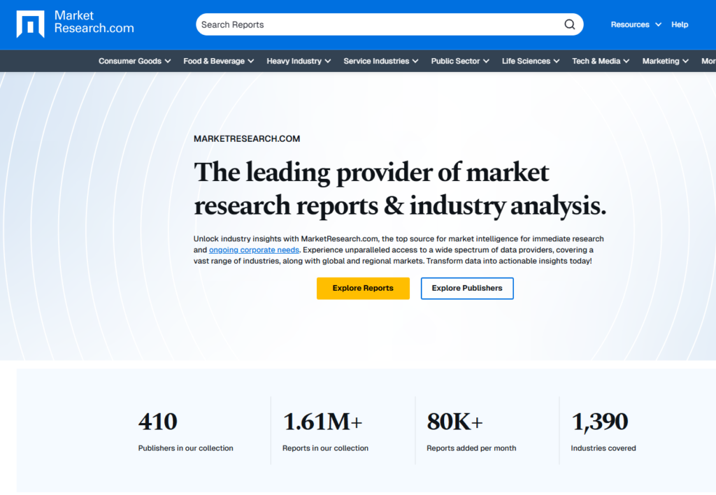 Download service for market reports from Arion, BIS Research, Mordor Intelligence, Grand View Research, MarketResearch, Allied Market Research, Gartner, Technavio, MarketsandMarkets, Frost & Sullivan, Forrester, Research and Markets, Persistence Market Research, and more. Additional sources available upon request.