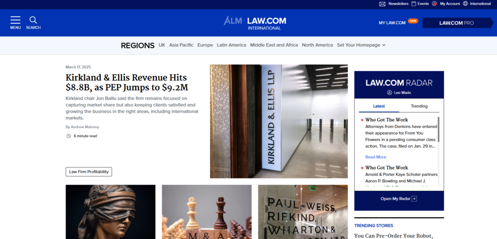 In-depth legal news and information for attorneys and legal professionals. One account per person with access to both US and International editions.