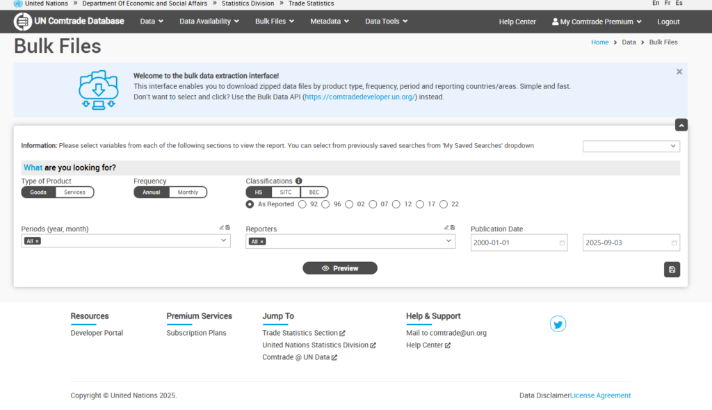UN Comtrade Premium – 1 Month Access